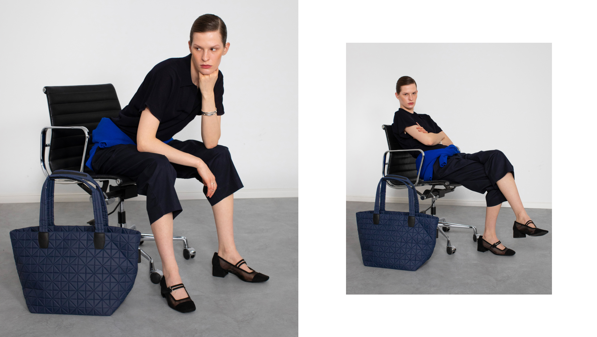 I conceived Office Hours as a recurring social series built around a single character — the Vee Collective woman — living her actual week. Each episode drops into a different moment: the office, the lunch break, the commute. The bag is always there, never the hero, always hers.